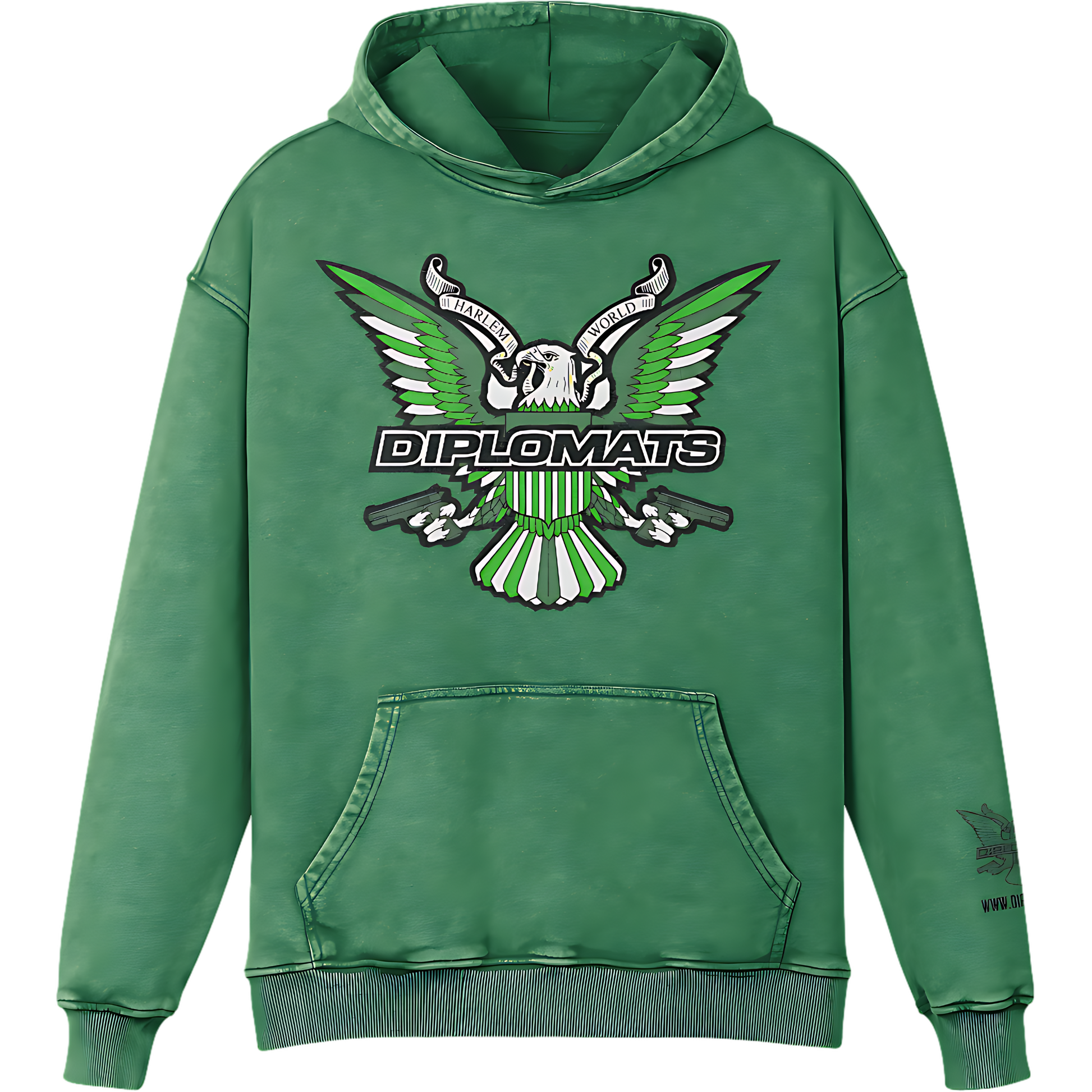 Official Diplomats release. 440GSM super heavyweight cotton. Oversized, unisex, and washed in that money green for militant Harlem vibes.