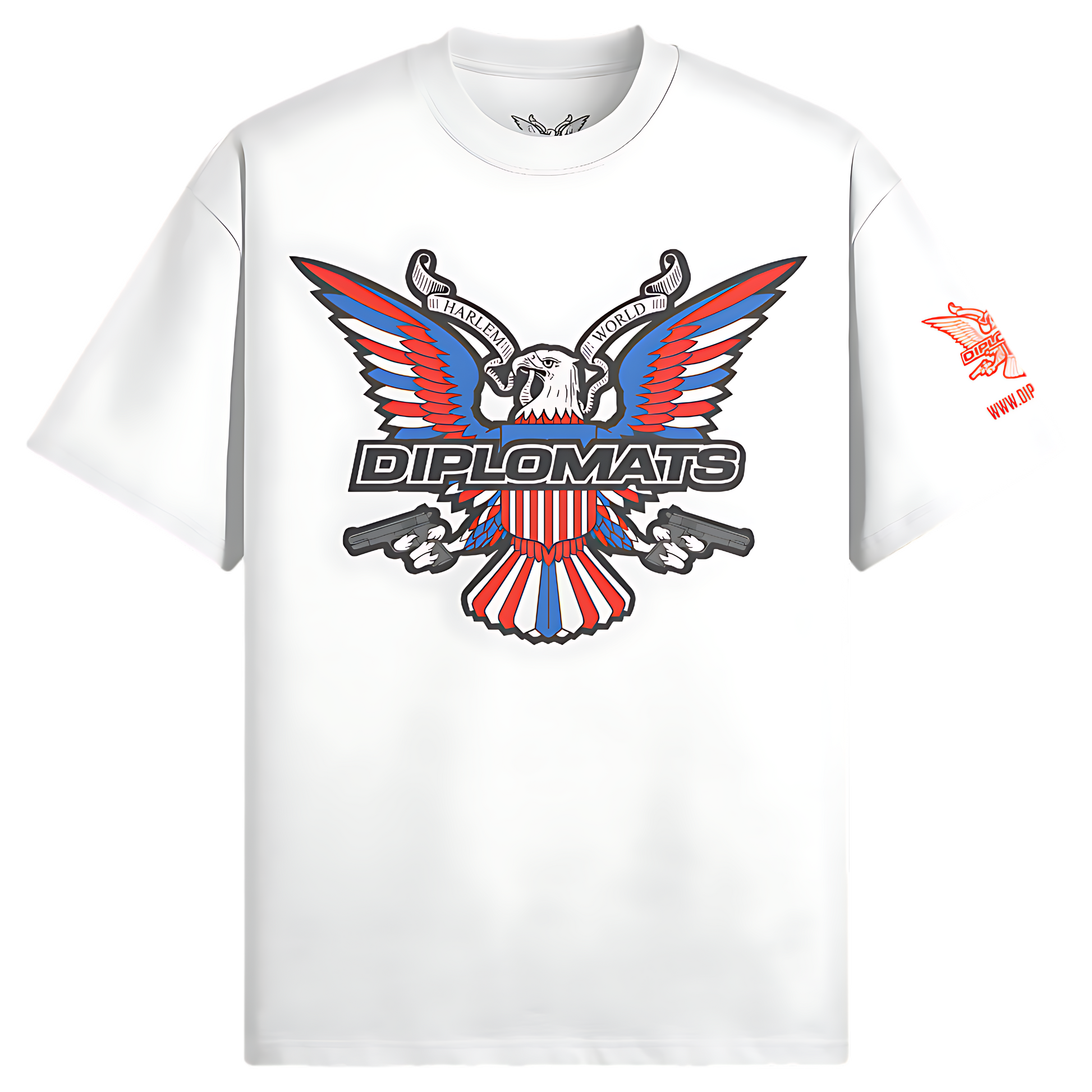 The classic Dipset All-White Tee is back — featuring the iconic red, white, and blue bird that became a tradition within The Diplomats. From Harlem to the world, Dipset has always repped red, white, and blue with pride, and this shirt became a staple in that movement.